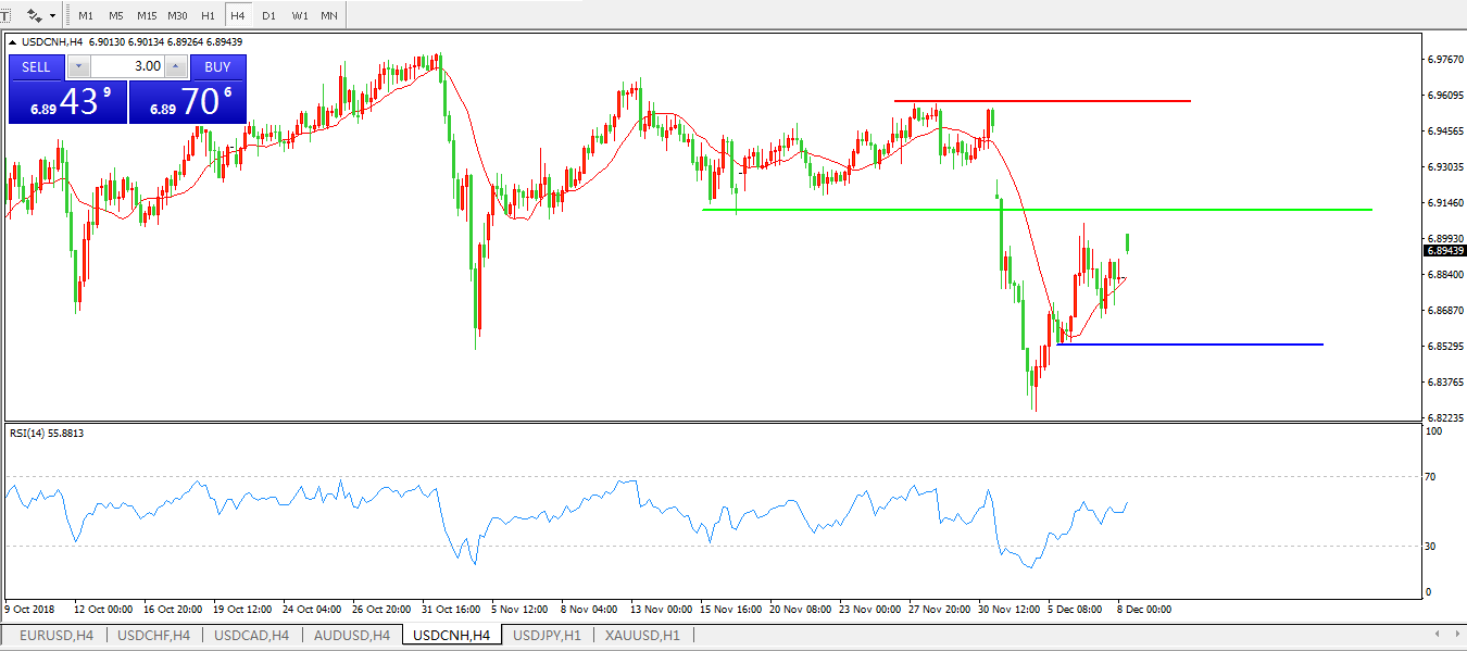 备选策略: 在6.9100之上,看涨,目标价位为6.9300,然后为6.9557。