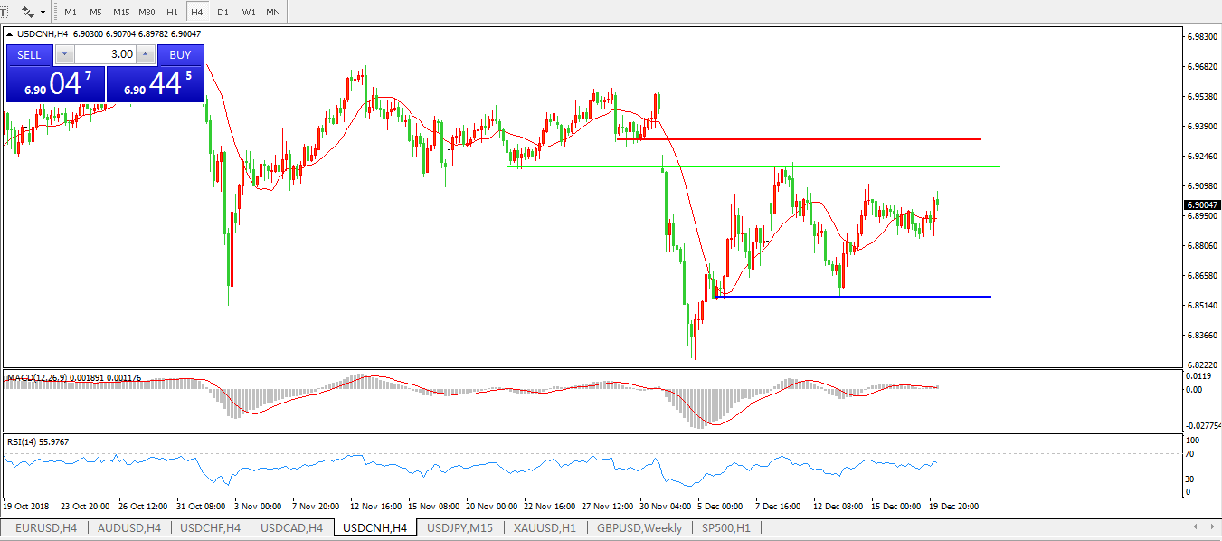 备选策略: 在6.9200之上,看涨,目标价位为6.9300,然后为6.9557。