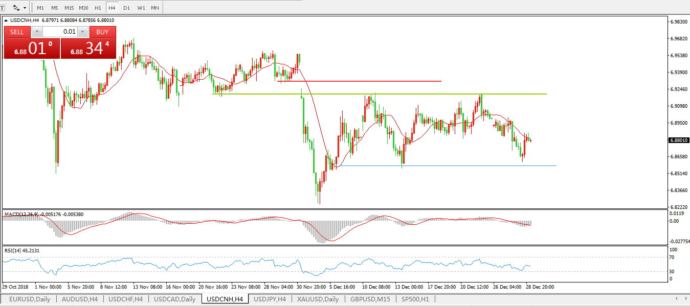 备选策略: 在6.9200之上,看涨,目标价位为6.9300,然后为6.9557。