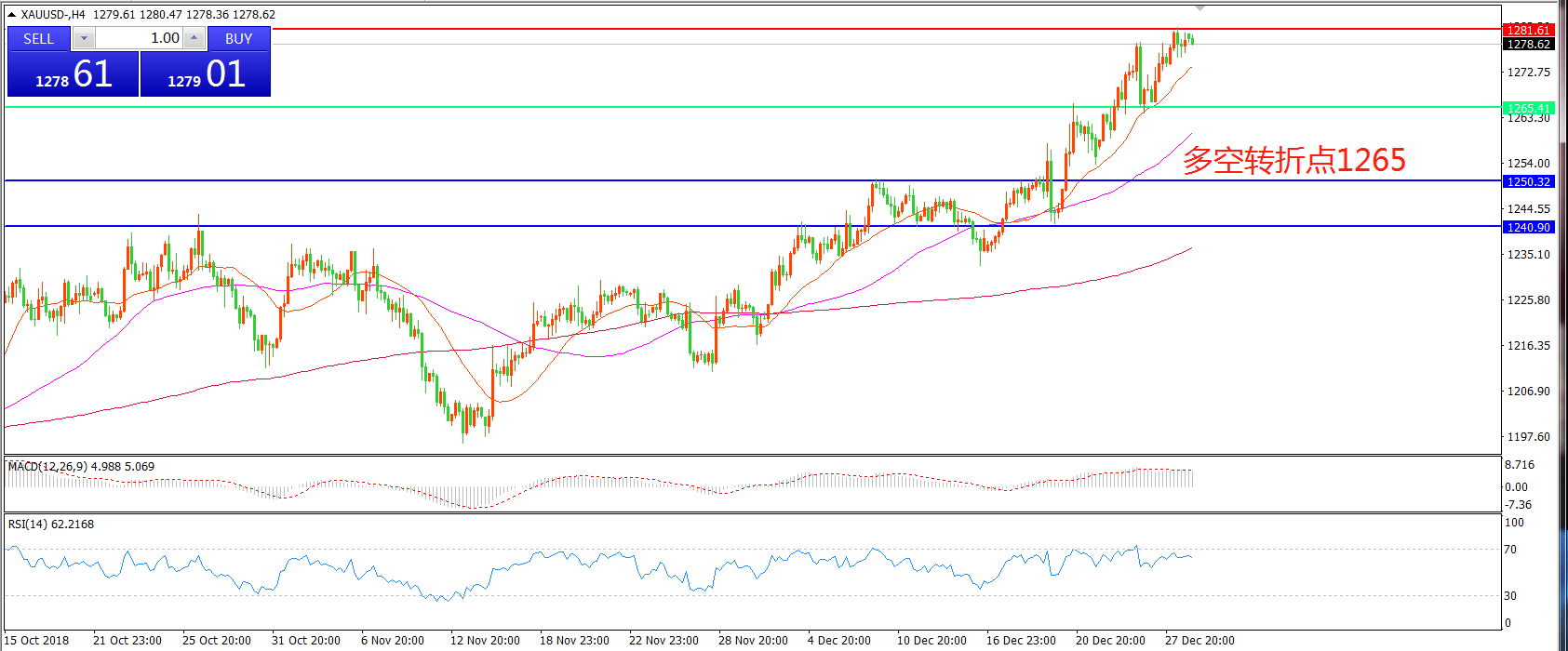交易策略:在1265.00之上看涨,目标1280.00  1300.00