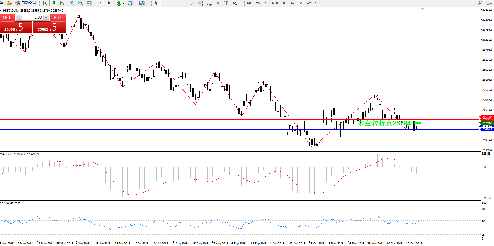 香港股市周一收高逾1%,受到围绕中美贸易关系的乐观情绪以及科技股上涨推动。但2018年整体表现疲弱。恒生指数 .HSI 收高1.3%至25,845.70点;恒生国企指数 .HSCE 亦上涨1.3%。港股下午因新年前夕提前休市。美中关系在新年到来之际似乎有所缓和。美国总统特朗普在推特上发文称,他与中国国家主席习近平进行了“非常好的电话长谈”,美国与中国之间正朝着可能达成贸易协议取得很大进展。