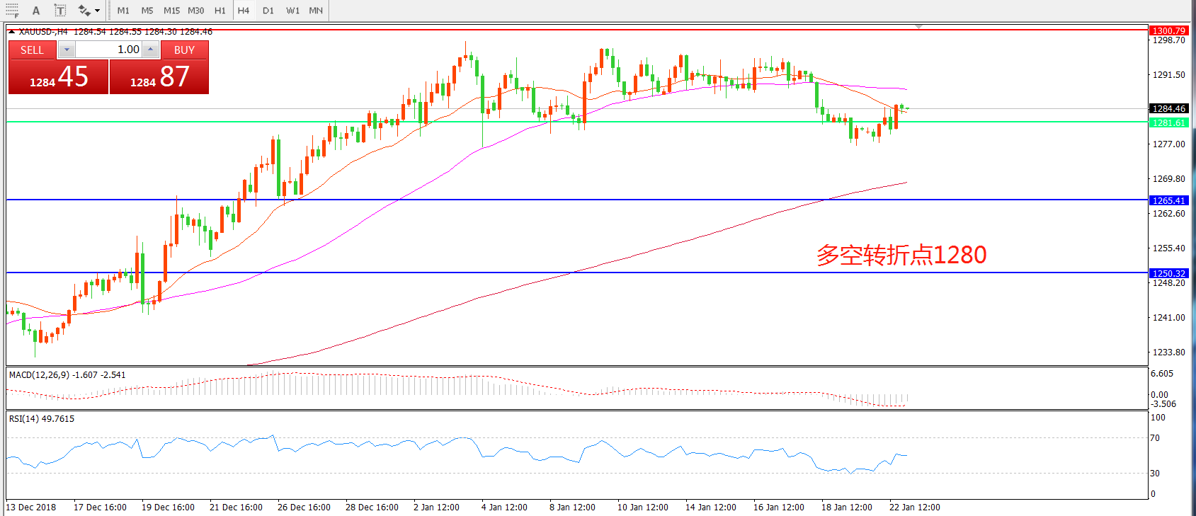 备选策略:在1280.00之上看涨,目标1300.00  1319.00
