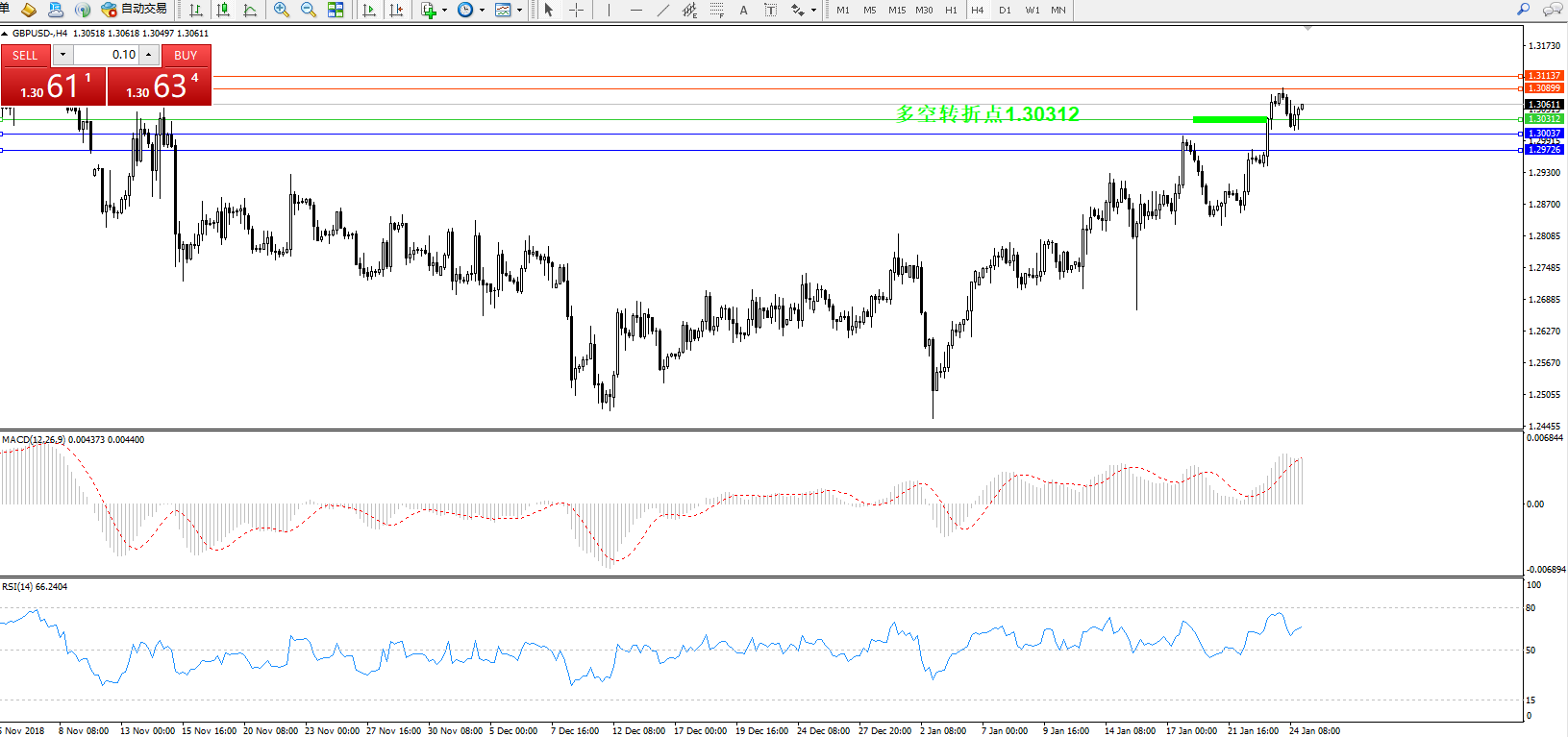 交易策略:1.30312上方看涨,目标1.30899、1.31137