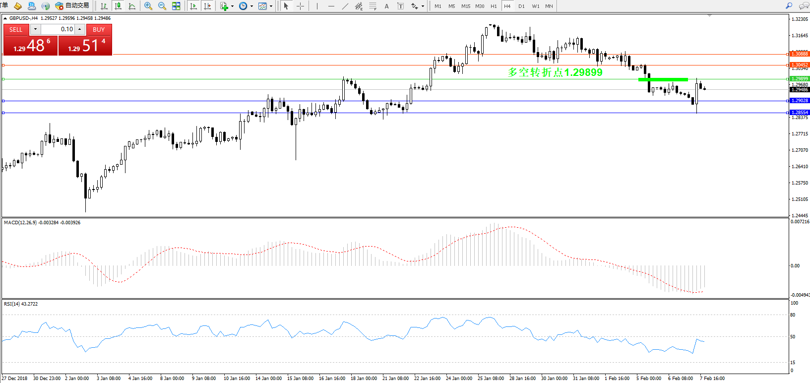 交易策略:1.29899下方看跌,目标1.29028、1.28554