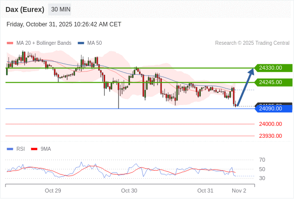 交易策略: 在 24090.00 之上,看涨,目标价位为 24245.00 ,然后为 24330.00 。