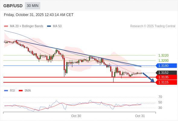 在 1.3180 之下,看跌,目标价位为 1.3135 ,然后为 1.3115 。