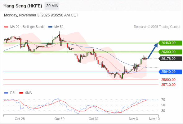 香港恒生指数期货 当日内: 目标为26460.00。