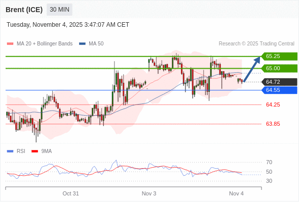 在 64.55 之上,看涨,目标价位为 65.00 ,然后为 65.25 。