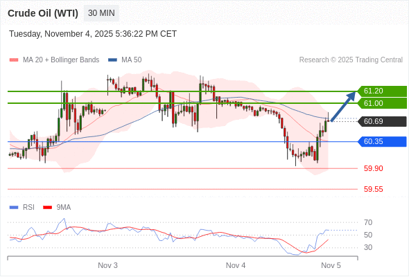 在 60.35 之上,看涨,目标价位为 61.00 ,然后为 61.20 。