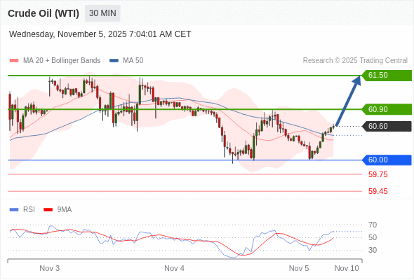 在 60.00 之上,看涨,目标价位为 60.90 ,然后为 61.50 。