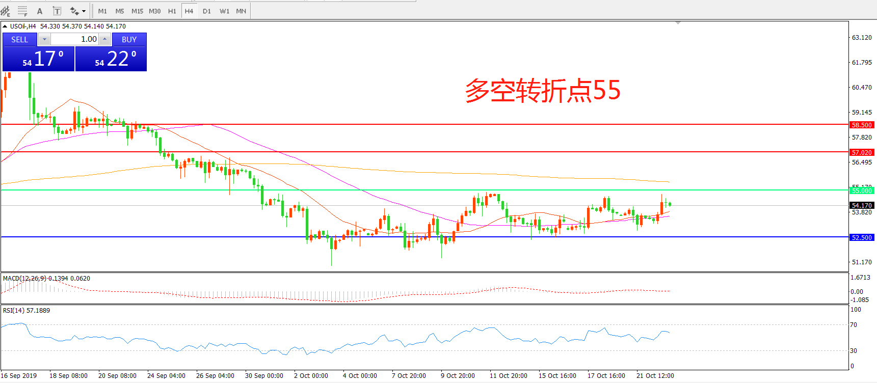 周三(10月23日)凌晨,美国石油协会(API)公布的数据显示,美国当周API原油库存增加445万桶,高于预期的172.5万桶,但汽油与精炼油库存双双减少,抵消了一部分利空影响。此外市场有人士指出,因2020年需求增速前景疲软,OPEC+或许会在12月大会上讨论延长减产时间,美油震荡走高,最终收报54.20美元/桶。EIA原油库存数据将在今晚22:30分公布,务必重点关注。