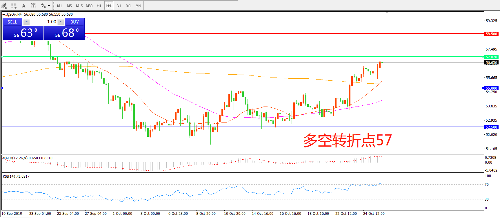 多空转折点:57.00