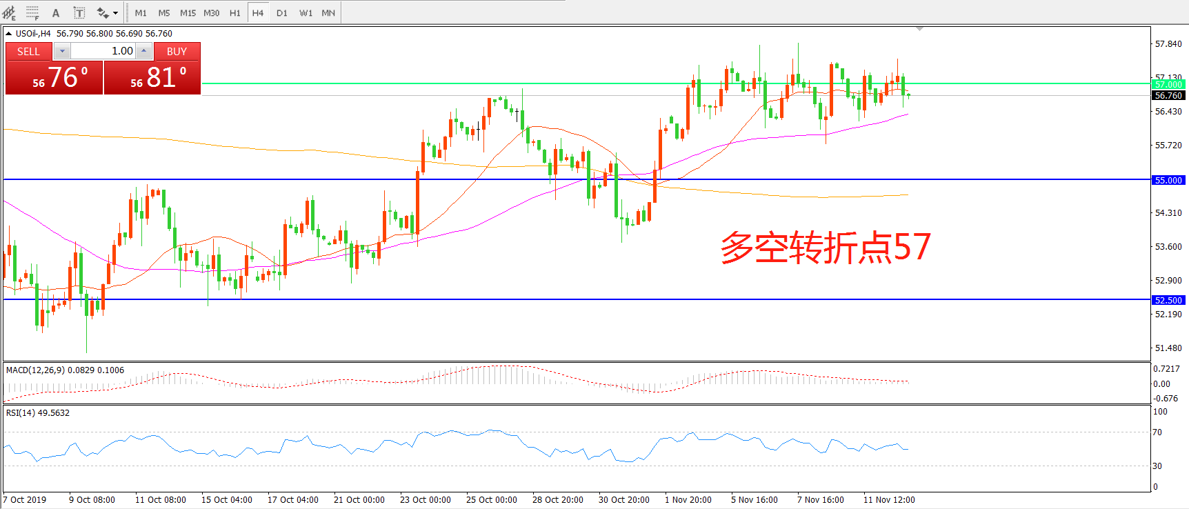 多空转折点:57.00