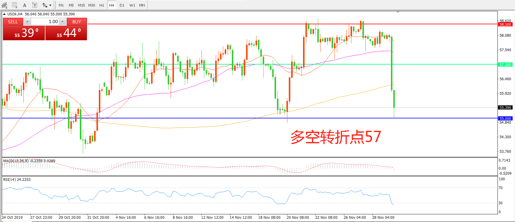 多空转折点:57.00