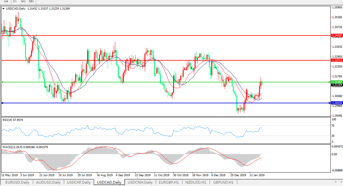 亚洲新兴冠状病毒疫情,亚欧股市大幅下跌,欧美贸易扯皮持续,市场担忧需求前景受到拖累,对油价打压明显;不过,EIA原油库存意外下降,美国股市也顶住下行风险,给油价提供支撑。OPEC称存在进一步扩大减产的可能,如果油价不能下破隔夜低点54.77附近支撑,短线油价将迎来一些反弹机会。美元兑加元一度升至四周高位,因原油大跌令加元前景蒙阴影,但随后有所回落,油价获得美国EIA原油库存及精炼油库存意外下降的支撑,周五继续关注加拿大零售销售数据。