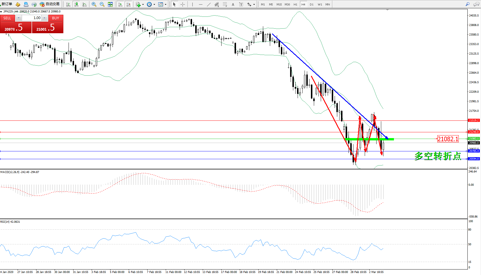 日经225指数3月3日(周二)收盘下跌253.08点,跌幅1.19%,报21091.00点。随着数据开始显示公共卫生事件对全球第三大经济体的影响程度,预计日本将陷入更深度的衰退。一项调查的预估中值显示,就在两周前第一季度日本GDP仅会萎缩0.25%。市场相信流动性将更为宽松,且将有财政扶持举措出台,这可能有助于在很短期内稳定市场人气,目前押注美联储将引领全球一轮货币宽松潮。但需要注意,投资者对宽松政策的规模、以及应对公共卫生事件带来的经济损失是否有效持怀疑立场。