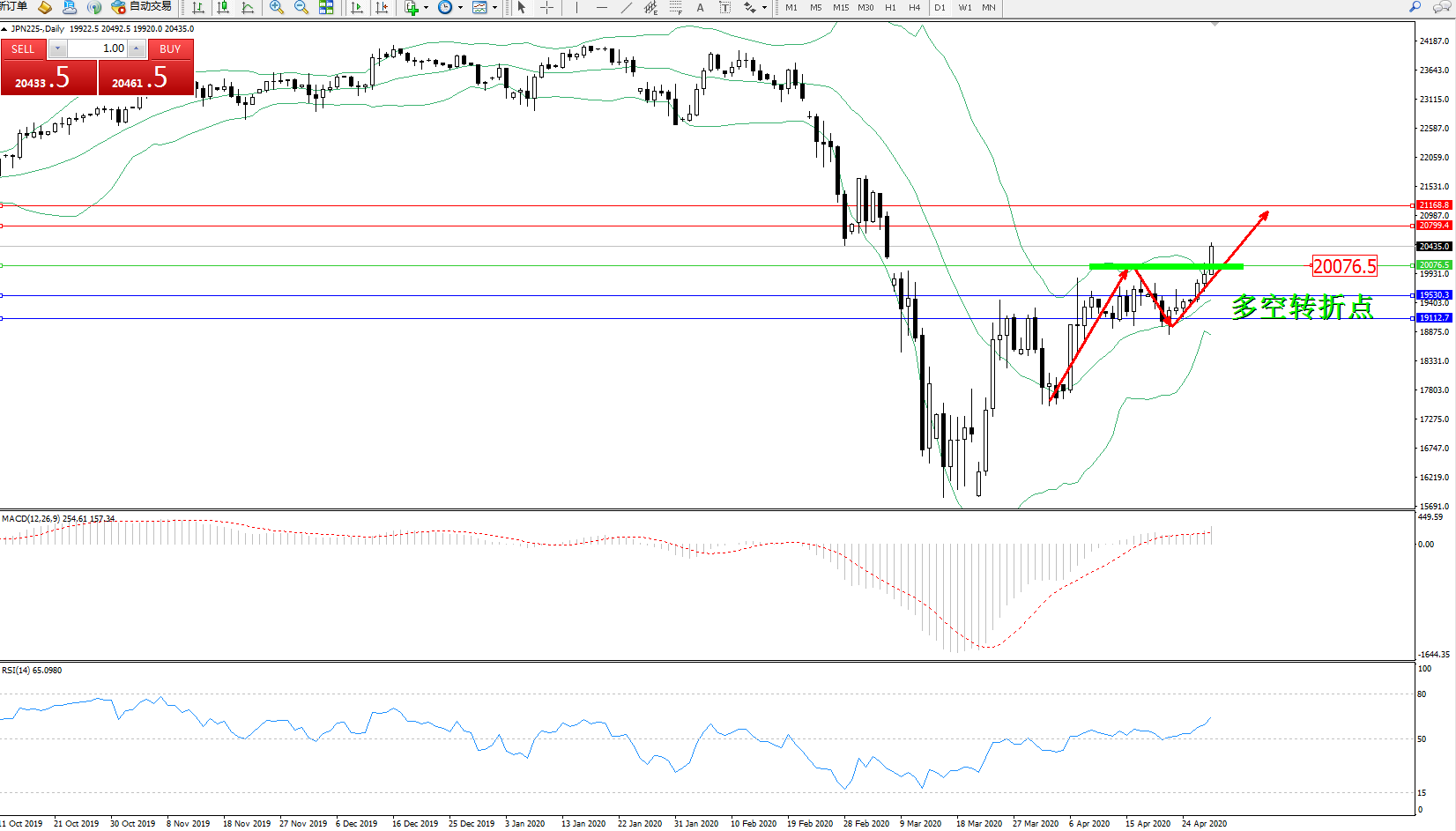 日经225指数4月28日(周二)收盘下跌39.72点,跌幅0.20%,报19743.50点。日本首相安倍晋三:国际奥委会和赛事组织者在奥运会额外花费上进行合作很重要,在额外的奥运费用问题上没有达成的一致意见。世卫组织必须是对对抗病毒的核心。应该避免做可能削弱世卫组织的事。当前的经济状况是我之前没有经历过的。心理状况上来看,现在的形势比大萧条时期更严重。日本内阁府将使用3月份的行业汇总统计数据,来更好地掌握第一季度初步GDP中的支出趋势。使用非政府数据将更好地反映居家令的影响以及3月消费支出下降,第一季度初步GDP通常只使用1月和2月的政府统计数据,因为3月官方数据要到5月底才能获得。