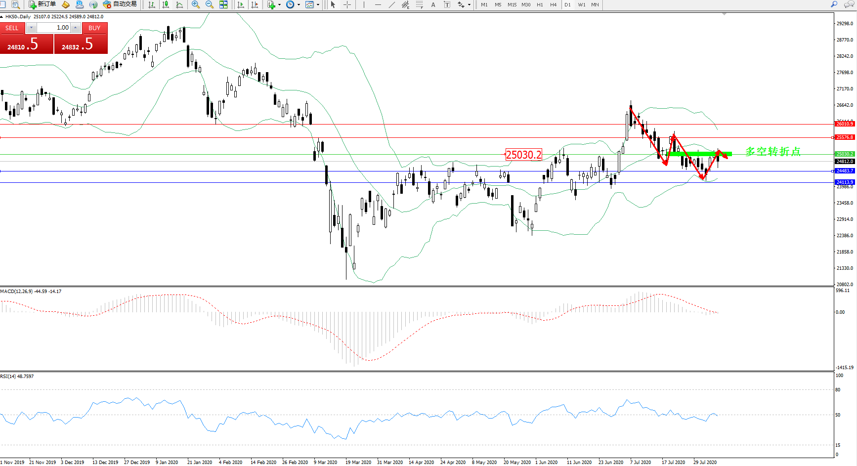 香港恒生指数8月6日(周四)收盘下跌171.96点,跌幅0.69%,报24930.58点;港股三大指数均收跌,金价新高,黄金及贵金属逆势领涨,招金矿业大涨近7%;中资券商股尾盘爆发,中信建投证券大涨超9%,恒指成份股大多下跌,中石油、中海油逆势涨1.4%撑市。今日南下资金净流入22.97亿港元,大市成交额为1358亿港元。 南下资金连续8日净买入美团点评(3690.HK) 累计超51亿港元,交所:七月证券市场日均成交额达1651亿港元,同比上涨140%。 证券市场市价总值于2020年7月底为40.4万亿港元,较去年同期的32.1万亿元上升26%。据香港经济日报等港媒,香港特区卫生防护中心当天通报称,香港新增新冠肺炎确诊病例95例,单日新增连续4天少于100例。其中,本地感染91例。此外,香港累计报告新冠肺炎死亡病例44例。
