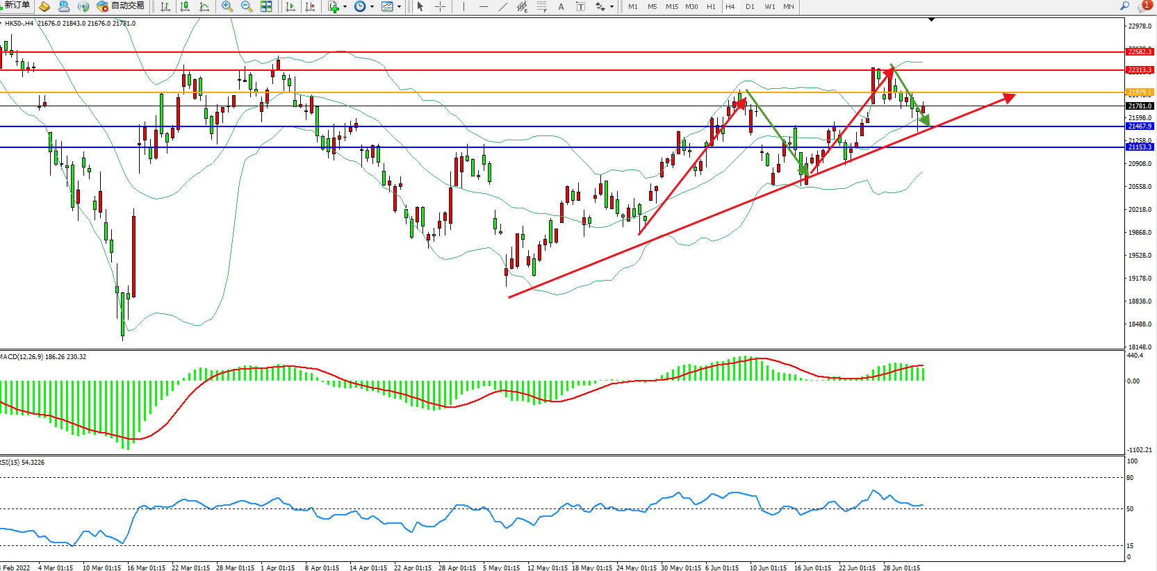 香港恒生指数7月4日(周一)收盘下跌29.44点,跌幅0.13%,报21830.35点;港股三大指数收盘涨跌不一,恒生科技指数涨0.28%。盘面上,大型科技股午后多数走强,美团、京东涨3.6%,百度涨超2%,小米、阿里巴巴均走高,惟腾讯跌2%;今日南下资金逆势净流入30.5亿港元,大市成交额为1314亿港元。