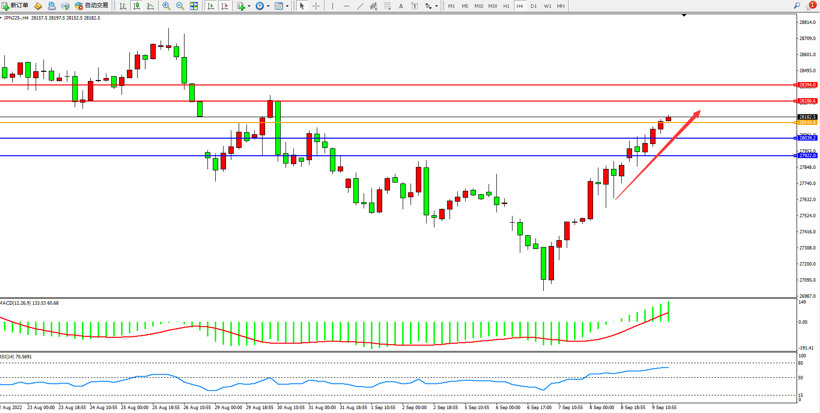 日经225指数9月9日(周五)收盘上涨170.22点,涨幅0.61%,报28235.50点。日本经济产业省称,国际原子能机构调查团将于11月14日至18日再次访问日本,并将前往东京电力公司福岛第一核电站,对核污染水排海安全性进行验证。
