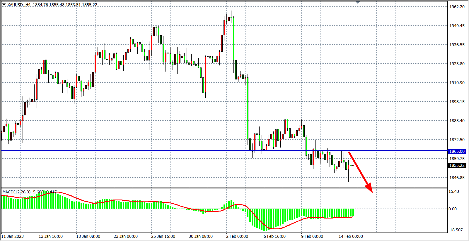 交易策略:在1865.00 之下看跌,目标1830.00 1820.00