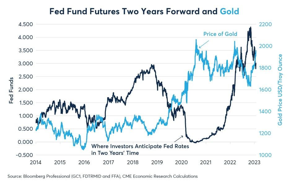 图1:美联储利率预期和金价走势反向而行